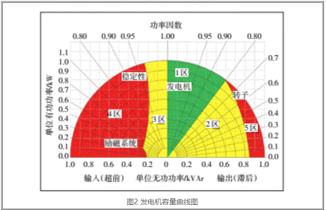 在2区的工作范围内,功率因素(落后)在0和0.8 中间。导出功率因素在0和0.6中间,导出无功负荷在0和0.85中间。