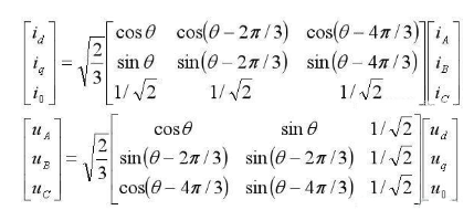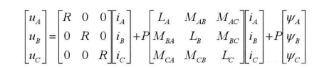 三相绕组的静止不动平面坐标(ABC)工作电压方程式为: