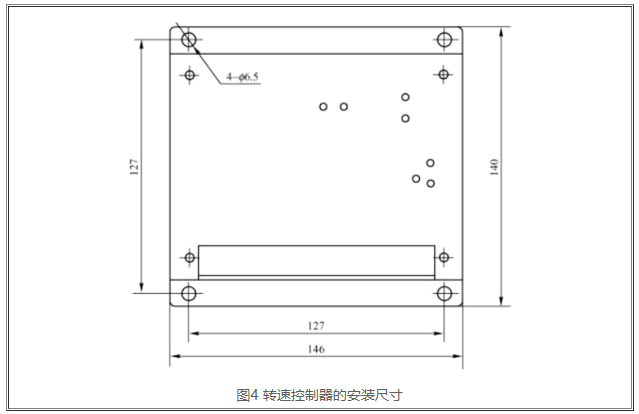 控制板应安装在无强烈冲击振动及干扰信号的安全防护箱里,并需留出强的室内空间供安装维护和散热的用处,其机壳需可靠接地。垂直安装能防止水蒸气太多停留。转速比控制板外形尺寸,如下图3所显示。