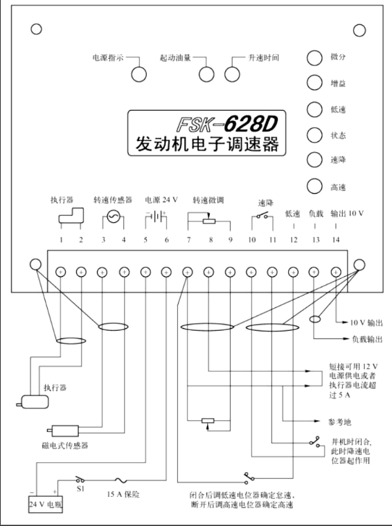 稳定调速度可调式。控制系统的稳定速度按照要求可以设置为可调式与不能调。把接线端子10、11接入,调速度为可调式。顺时针速降电阻器,稳定调速度扩大。这时,汽车发动机校准转速比可能还需要重新设置。