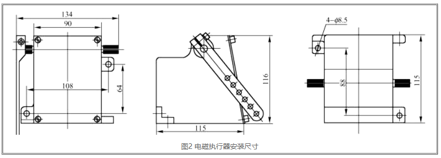 (2)电磁执行器外形尺寸,如下图2所显示。(企业:mm)